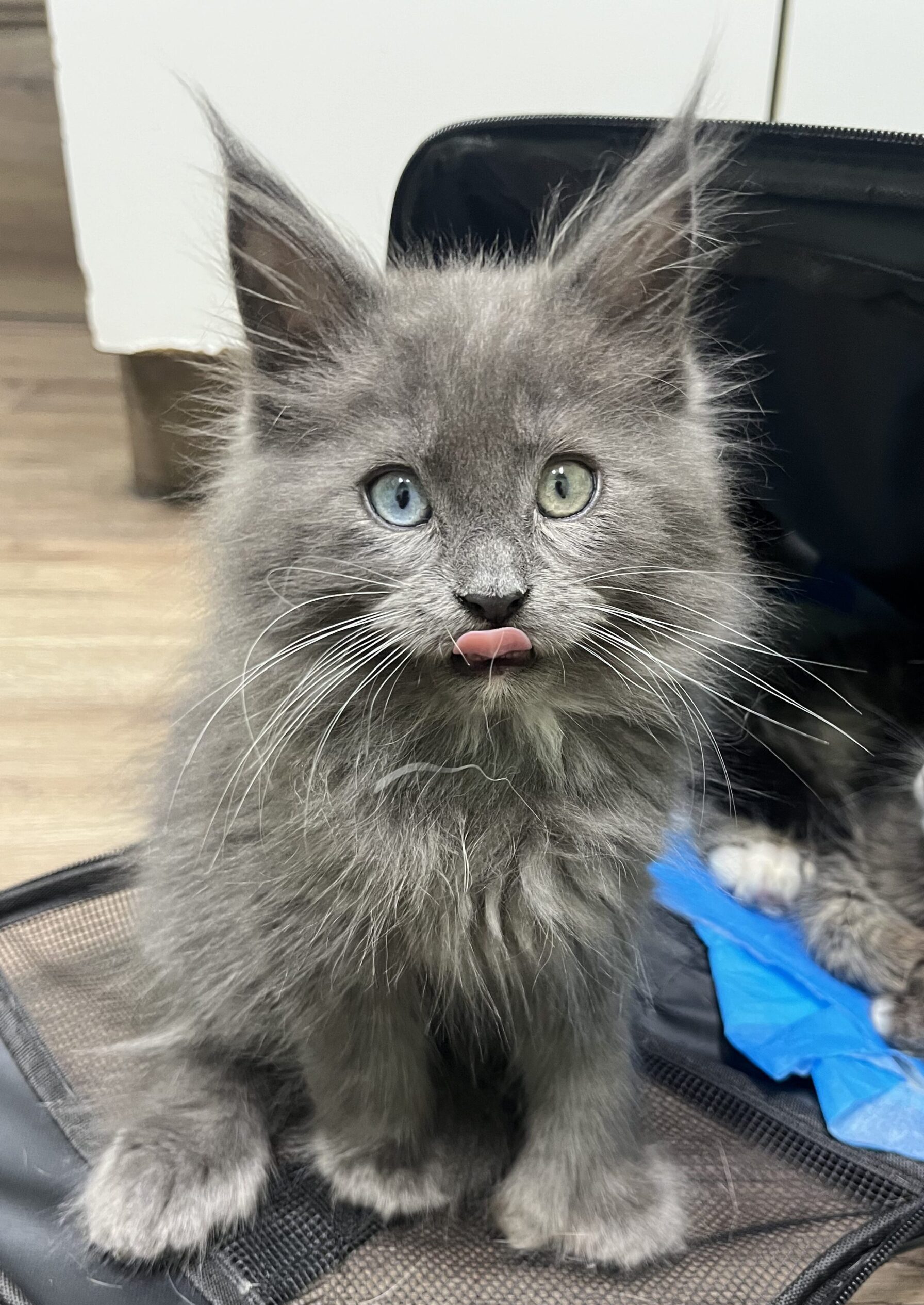 Our blue-eyed Maine Coon from Fluffy Tufts is absolutely breathtaking. Beyond that, her temperament is incredible. We’re so grateful.